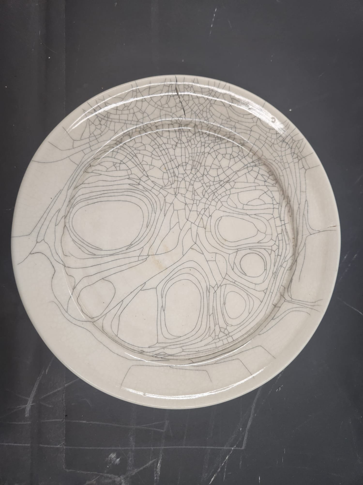 (Image left: before treatment, image right: after treatment). This ceramic-ware plate was repaired with 41% Polaroid B-72 in xylene.